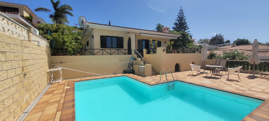 Das Haus hat 4 Schlafzimmer, 3 Bäder, Doppelgarage, 2 große Terrassen, Pool und Garten und massive Alufenster mit Fensterläden. Umständehalber komplett mit Möbel, Geräte und Inventar zu verkaufen für 875.000,-