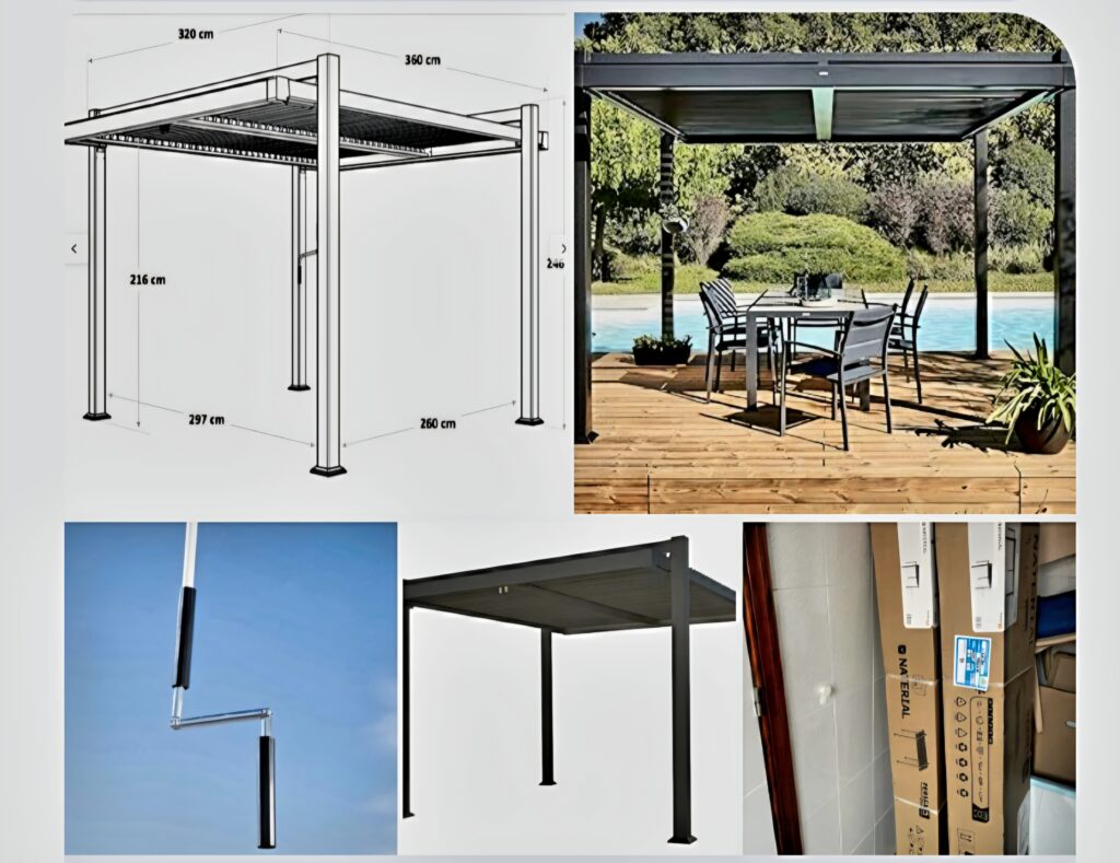 Bioklimatische Pergola aus Aluminium, Material Persea grau, 3,20 x 3,60 Meter. Neu, aufgrund von Umständen nie benutzt, originalverpackt. Mit Kaufbeleg von LMerlin über 1600 €. Jetzt zu verkaufen für 1200 € (Los Silos, Teneriffa Nord).