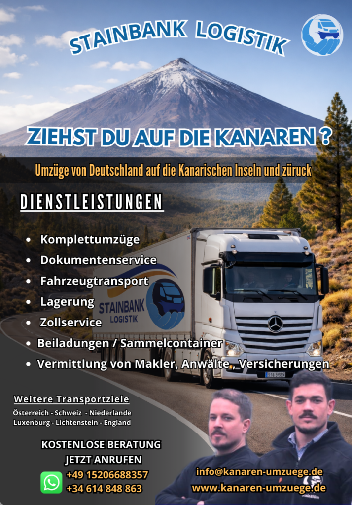 Der nächste Sammelcontainer von den Kanaren nach Deutschland ist für Mitte April geplant. Aktuell haben wir noch freie Kapazitäten und können deshalb besonders attraktive Preise anbieten.
